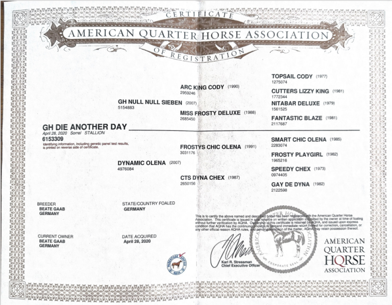 James ist im FNP (Foal Nomination Programm) der NRHA registriert.